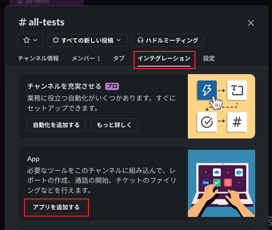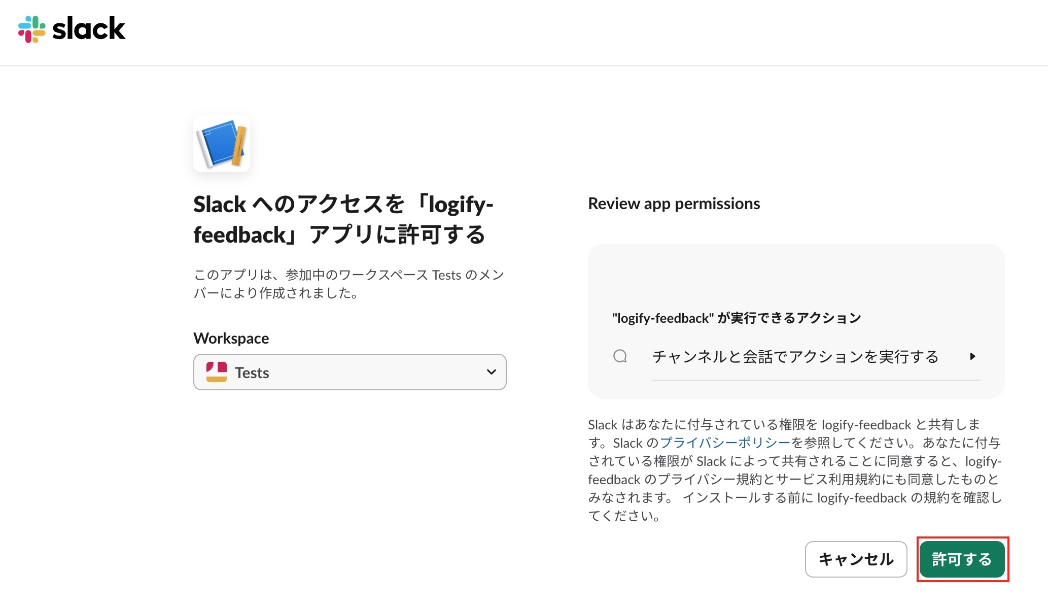 Setup procedure for sending feedback to specific channels using Slack's Bot User feature. Unlike Discord, Slack requires a two-step process: "creating the app" and "adding to channel".