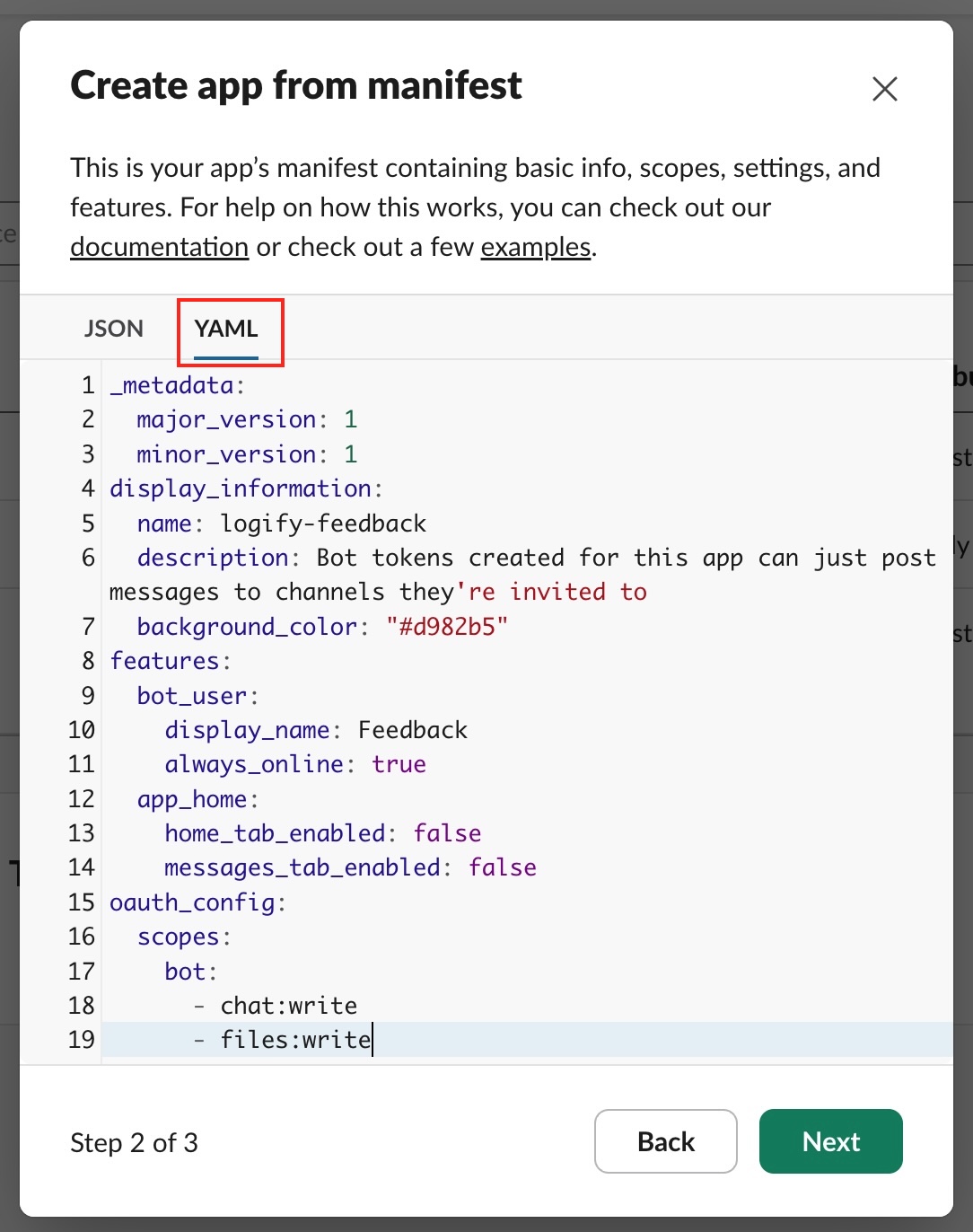 Confirm Permissions and Create Verify that Bot Scopes includes