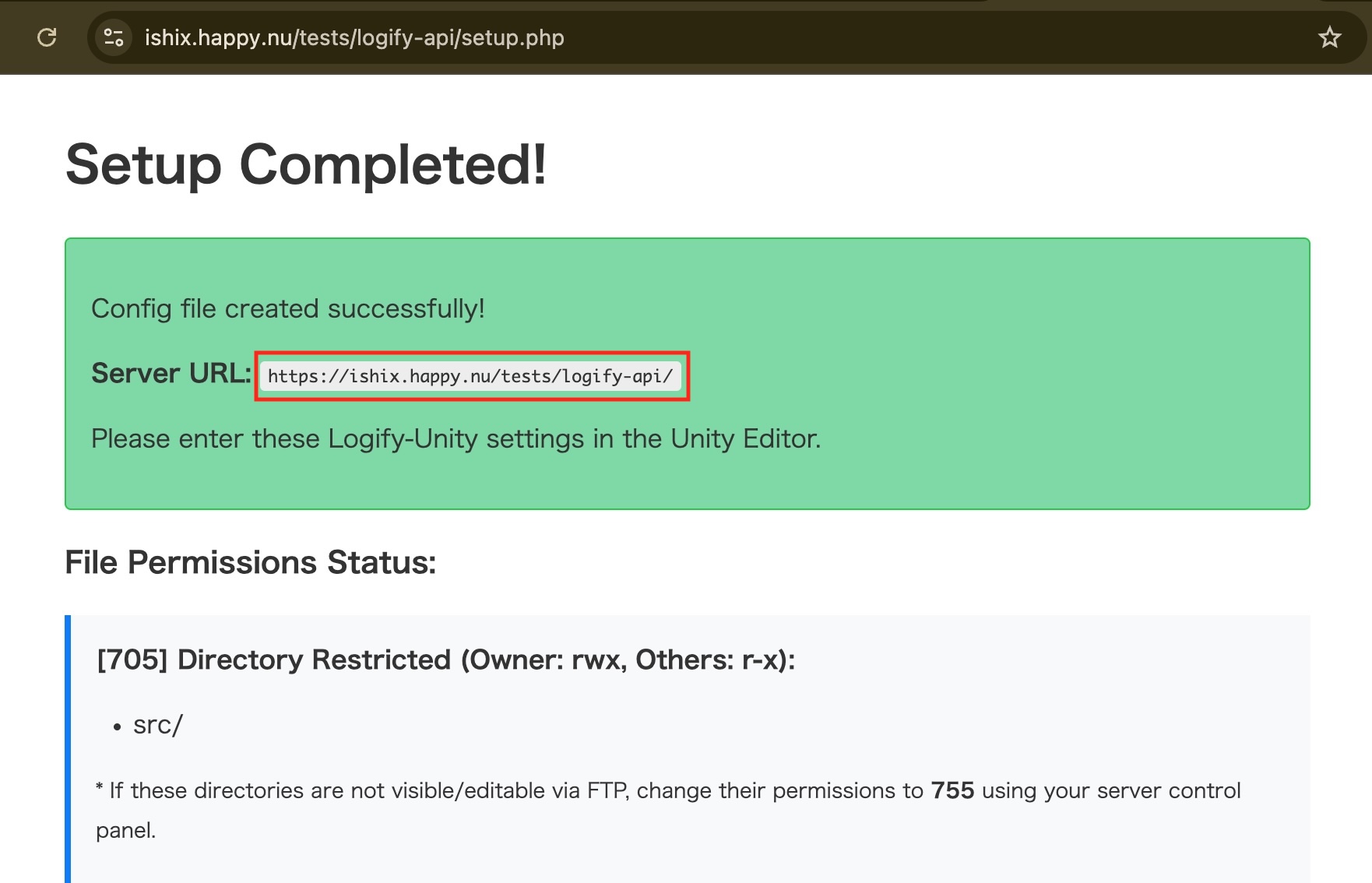 (例: https://yourdomain.com/logify-api/setup.php)
