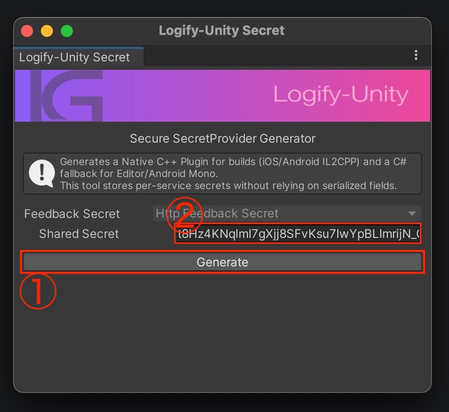 //1. [必須] Unity側で生成した Shared Secret を入力